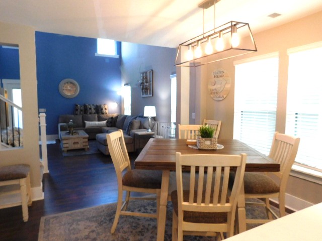 This comfortable townhome boasts tranquility and up datedness! This unfurnished townhome has luxury vinyl plank, and carpeting. The front porch is quaint for two rocking chairs and the top porch overlooks the neighborhood. The kitchen boasts new high-end appliances, quartz counter tops, big stainless-steel sink, and food pantry. A countertop bar area for breakfast or lunch, and an eat-in kitchen area with lots of windows and light. There is a half bath, hallway closet and a large living room to relax in with vaulted ceilings & ceiling fan for comfortable gatherings.The 1st primary ensuite has its own bathroom, walk-in shower, and large walk-in closet. The back porch is spacious for entertaining, very private and quiet. Small fenced in back yard for your pleasure. Upstairs, there is a laundry room, two sizable bedrooms, bathroom, and a 2nd primary ensuite with another large walk-in shower, big bathroom, double vanity, and spacious walk-in closet. Off of this bedroom, the outside porch overlooks the street and neighborhood. The one car garage is oversized and has an expansive, high ceiling and a driveway that can easily fit four cars! You are close to Hilton Head restaurants, schools, and grocery stores, and if you need to get off the island, you’re close to Bluffton, Pickney Island, and other gated communities. Again, it is Unfurnished and ready to rent in February 2026. Take advantage of this delightful home, enjoy and be happy! Pest control, landscaping and HVAC services included. 2200 Sq. Ft. Pets Considered. No Smoking. $3900 per month.