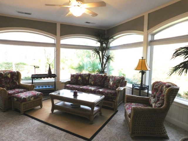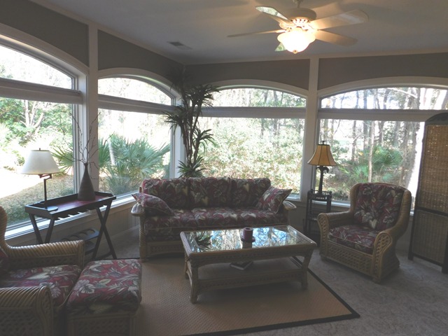 Spacious 4 bedroom 3.5 bath furnished Low Country home available in Indigo Run Plantation. Large great room with custom built-in bookcases. The kitchen has hardwood flooring, corian countertops, raised panel glazed cabinets overlooking the dining area and great room. The two downstairs bedrooms share a bathroom, and one opens into the carolina room which is full of natural light. The primary bedroom is spacious with a big walk-in closet, and the bath has a full whirlpool tub and double vanity sinks. The 4th bedroom is located upstairs and has a full bath and shower. The oversized laundry room is right off of the 2 car garage. This home overlooks the 15th fairway of Golden Bear Golf Course. Landscaping, pest control, and HVAC services are included! Available February at $4500 per month. Pets considered! Come and enjoy!
