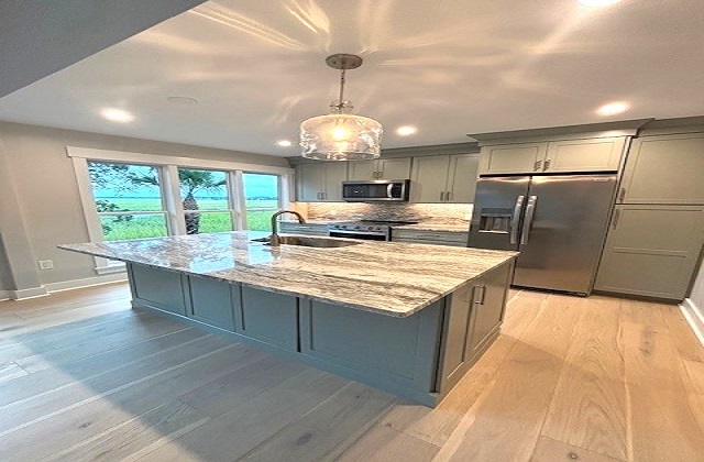 ALL NEWLY REMODELED! EVERYTHING IS BRAND NEW! This beautiful 3 bedroom 3 bath unfurnished townhome has a one car garage, with access into the unit. Adjoining is a utility room, with full size washer and dryer, refrigerator and storage. Located in Broad Creek Landing, this villa has all new appliances, flooring, ceilings, windows, outside deck, beautiful Oak front door, new kitchen, new updated bathrooms, all new duct work and HVAC! Enjoy this beautiful spacious villa with marsh and sunset views from your kitchen wall of windows or your private deck. Wood burning fireplace. Approximately 2200 square feet. $4200 per month. Come and enjoy! Owner is responsible for pest control, landscaping and HVAC maintenance Tenant is responsible for electric, water and cable /internet services. Pet considered 1car garage additional